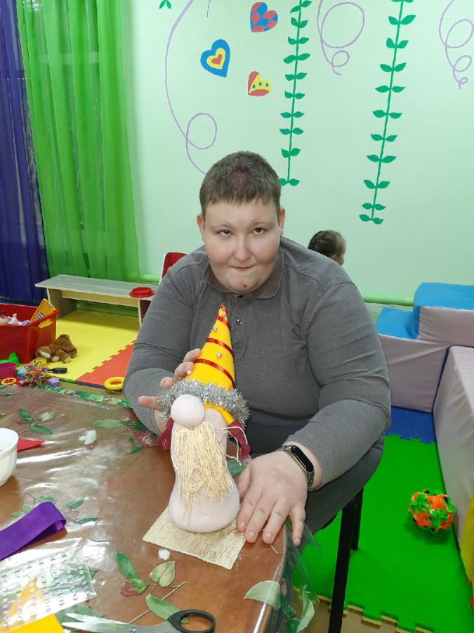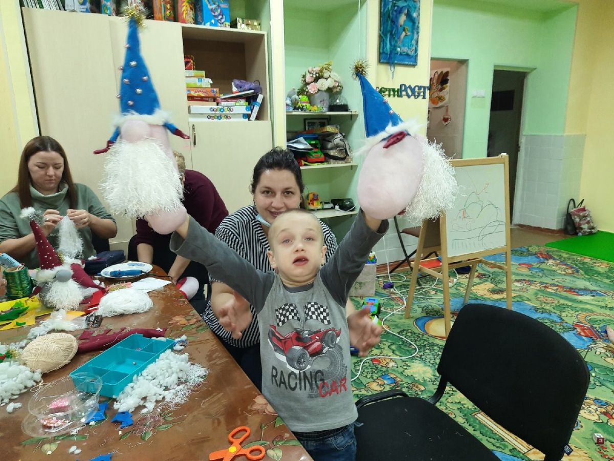 Волонтёр Ирина предложила нам сделать новогоднего гнома. Время пролетело незаметно, а гномы у семеек получились замечательные.