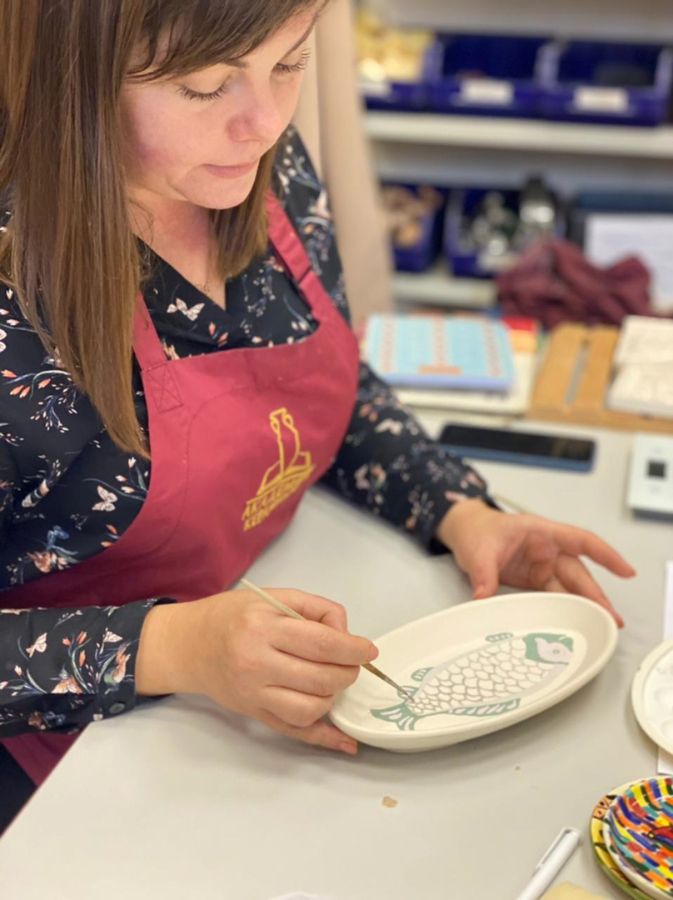 В ходе обучения познакомилась с гончарным формованием, ручной лепкой в разных техниках, освоили основные техники нанесения ангобов и глазурей, прошли полный цикл создания изделия от эскиза до готовой работы.