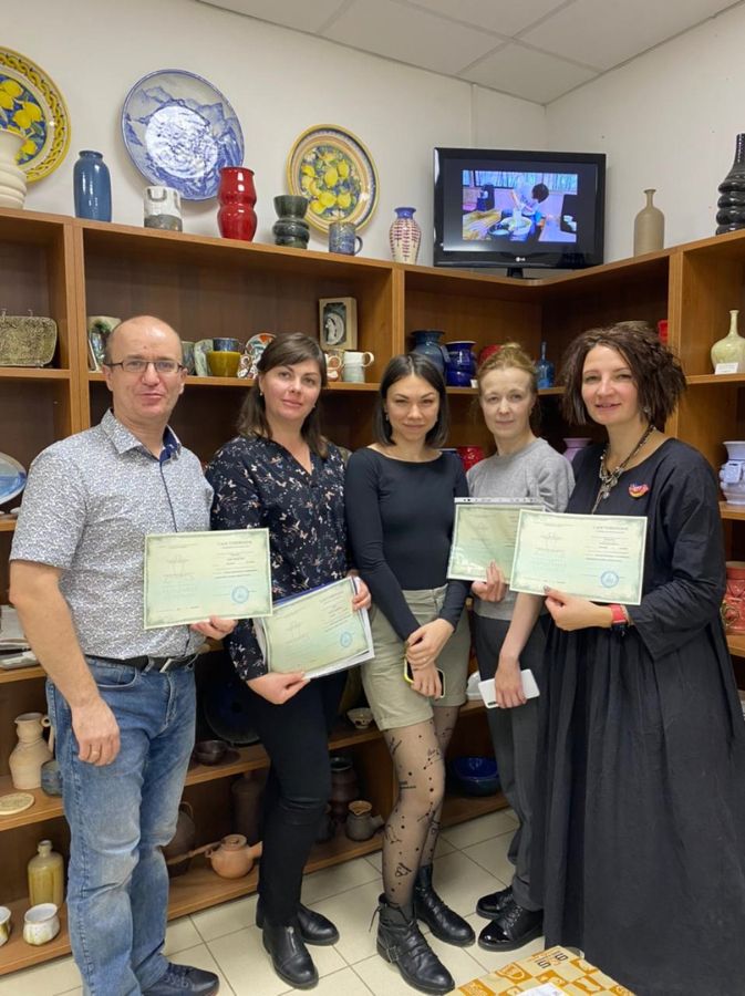 В рамках проекта "Инклюзивные творческие мастерские "ПРОСТО", поддержанного Фондом президентских грантов, в период с 18.10.2021 по 30.10.2021 наш педагог гончарной мастерской "ПРОСТО" г.Красноперекопск Татьяна Александровна Войчук прошла курсы повышения квалификации по программе "Основы формования и декорирования керамических изделий" в "Академии керамики" г.Санкт-Петербурга .